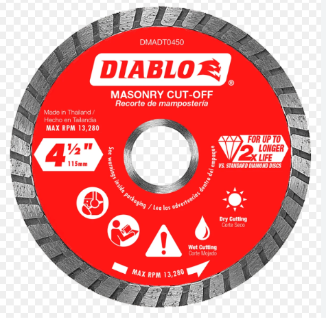 Diablo’s diamond turbo masonry cut-off discs provide extreme durability and longer life in concrete, brick and cinder block applications. These continuous rimmed diamond discs deliver up to 2X longer cutting life versus standard diamond cut-off discs. The disc’s industrial-grade diamonds coupled with a hardened disc body delivers lasting durability and maximizes cutting quality in hardened materials even in extreme applications.